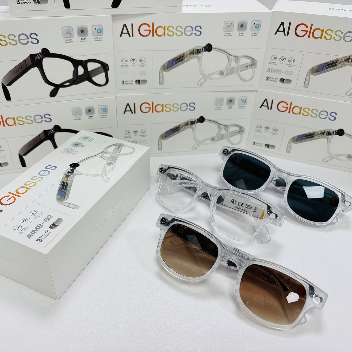 AI Smart Glasses with 3 Lenses,Transparent Glasses Frame,8MP Sony Camera,1080P Video & Audio Recording,Open-ear Audio,Real-time Translastion,AI Voice Control