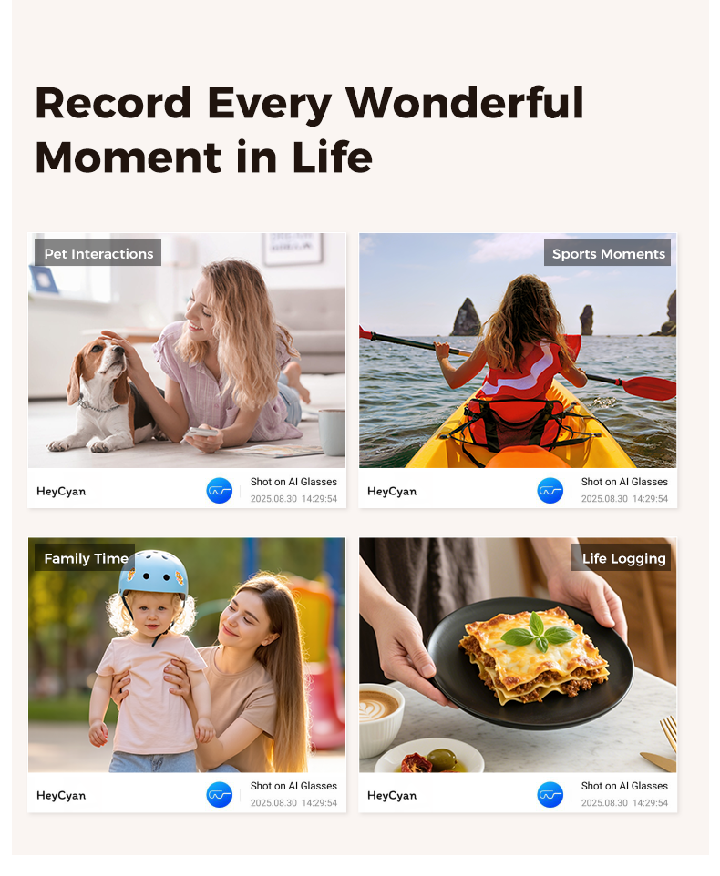 Functions:AI voice wake-up, AI photo recognition,AI intelligent question-and-answer interaction,AI smart translation,High-definition photography and video recording,Wi-Fi transfer of photos,Videos,and recordings to phone, Adjust volume, Wear detection, Dual microphone noise reduction, Call noise reduction, Intelligent voice assistant, Bluetooth calls, Music playback (switch, pause music)