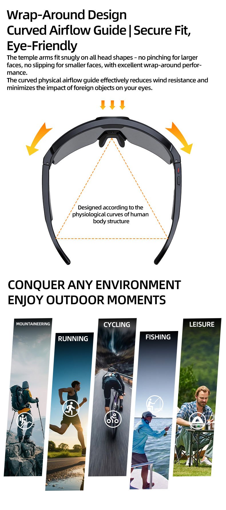 Cycling Smart AI Glasses with 8MP,Antil-shake 1200P Video Recording,Real-time Translation,AI Voice Assistant,Object Recognition,Bluetooth Calling