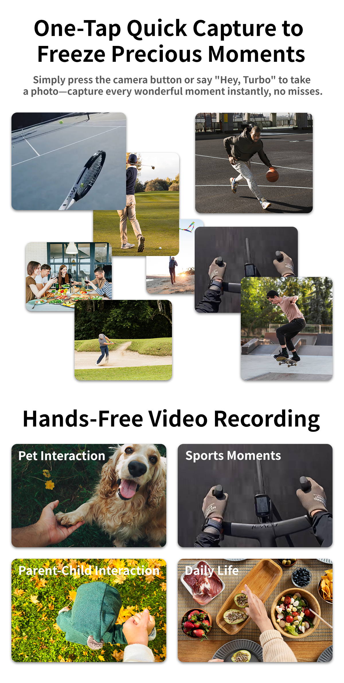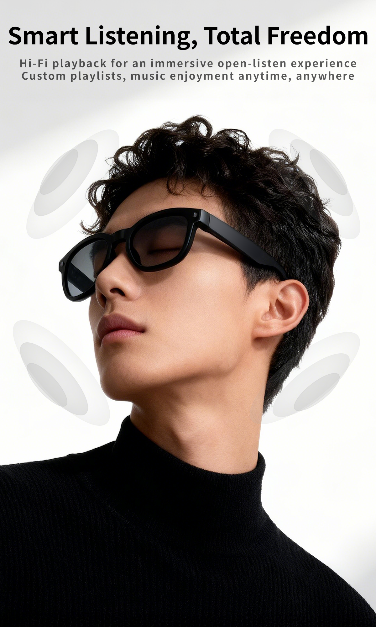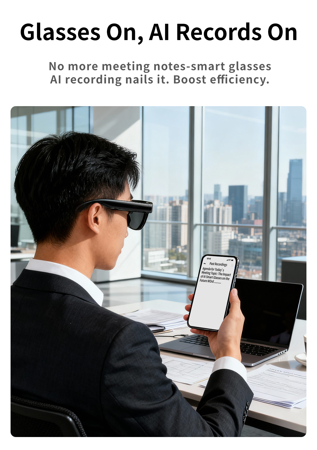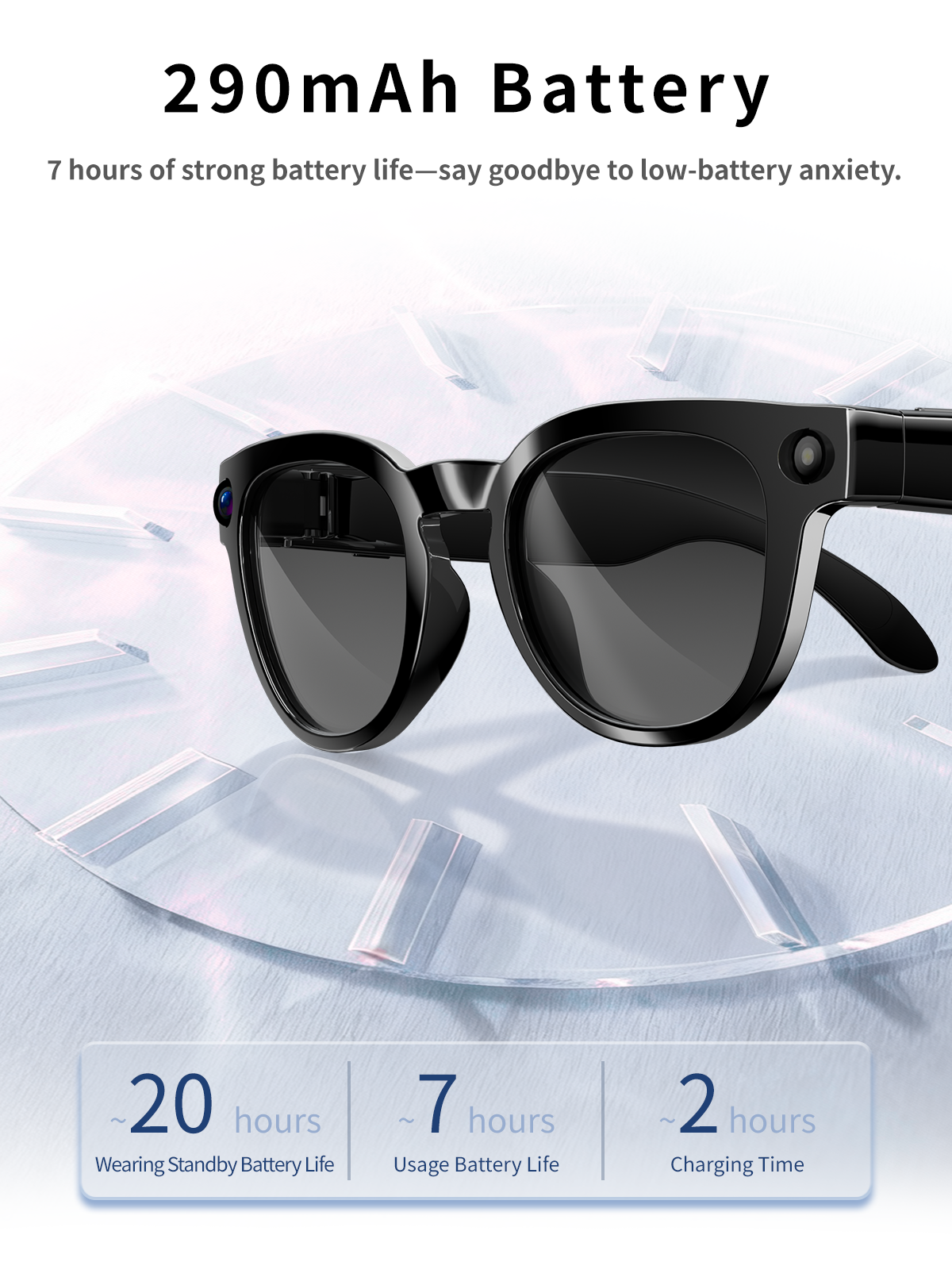Functions:AI voice wake-up, AI photo recognition,AI intelligent question-and-answer interaction,AI smart translation,High-definition photography and video recording,Wi-Fi transfer of photos,Videos,and recordings to phone, Adjust volume, Wear detection, 2 microphones noise reduction, Call noise reduction, Intelligent voice assistant, Bluetooth calls, Music playback (switch, pause music)
